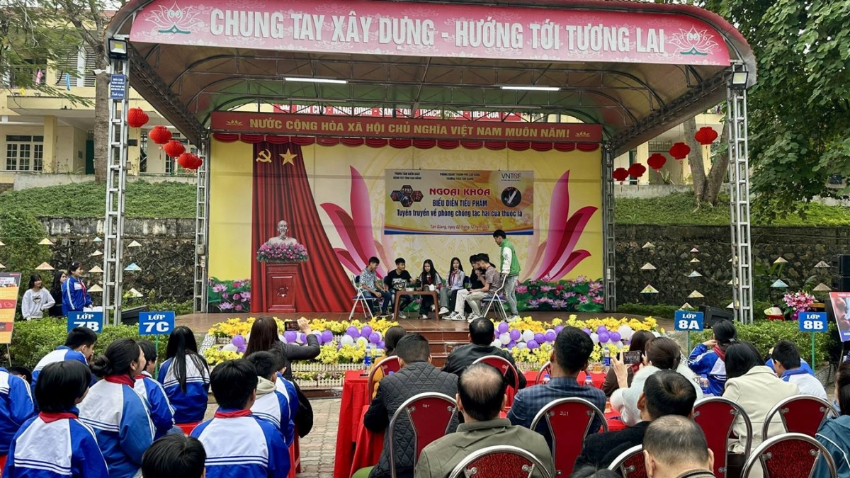| Trường THCS Tân Giang (thành phố) tổ chức ngoại khóa biểu diễn tiểu phẩm tuyên truyền về phòng, chống tác hại của thuốc lá. |