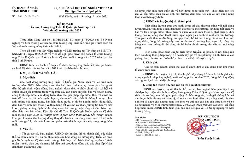 | Kế hoạch : Tổ chức, hưởng ứng Tuần lễ Quốc gia Nước sạch và Vệ sinh môi trường năm 2025 |