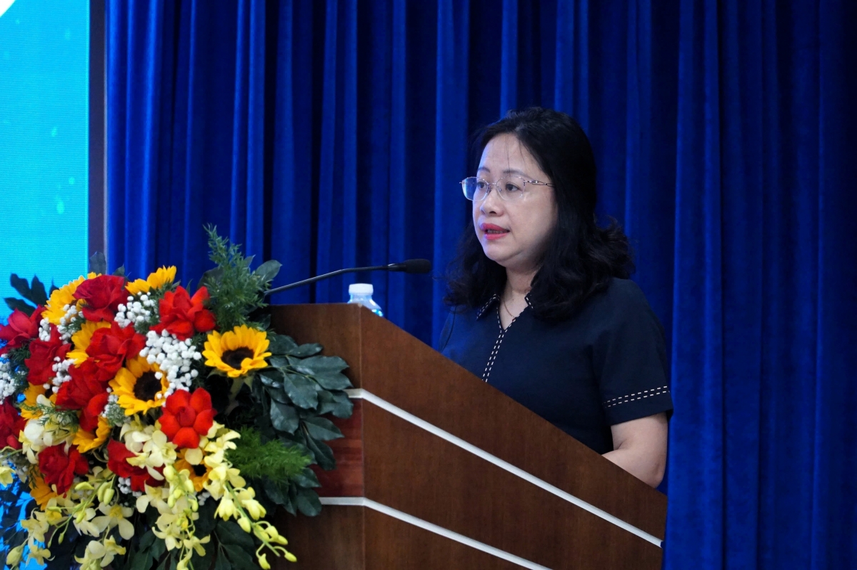 | Bà Đỗ Thị Minh Trâm – Phó Cục trưởng Cục Đổi mới sáng tạo, Chuyển đổi xanh và Khuyến công (Bộ Công Thương) phát biểu tại Hội nghị |
