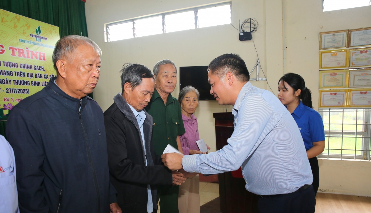 Trước đó, ngày 23/7, Tổng Giám đốc BSR Nguyễn Việt Thắng đã trực tiếp đến thăm và trao quà tri ân các thương, bệnh binh tại phường Nghĩa Lộ, thành phố Quảng Ngãi. Tại phường Trương Quang Trọng và xã Nguyễn Nghiêm, những phần quà nghĩa tình tiếp tục được trao bởi các lãnh đạo BSR, mang theo hơi ấm và sự sẻ chia từ trái tim đến trái tim.