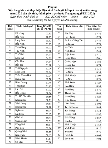 Đà Nẵng là địa phương có chỉ số bảo vệ môi trường cao nhất năm 2022