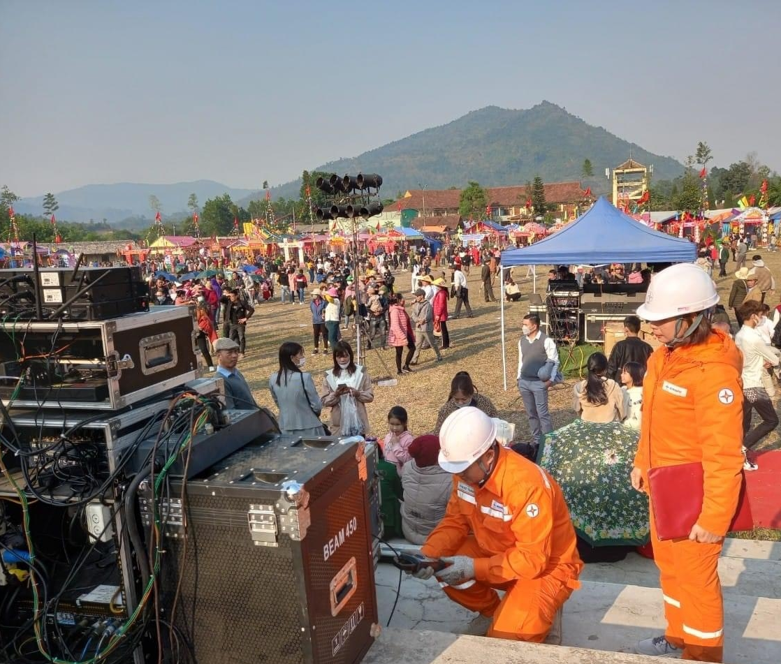 Bên cạnh đó, kết hợp với chính quyền các địa phương tuyên truyền cho nhân dân ý thức sử dụng điện tiết kiệm, bảo vệ hành lang an toàn lưới điện cao áp. Chủ động rà soát, xây dựng và triển khai các phương án bảo vệ an ninh trật tự, an toàn, phòng chống cháy nổ cho các công trình điện, trụ sở cơ quan, kho tàng; Tiến hành bảo dưỡng, chạy thử máy phát điện, sẵn sàng triển khai lắp đặt và vận hành máy phát phục vụ các hoạt động diễn ra trong sự kiện lễ hội.