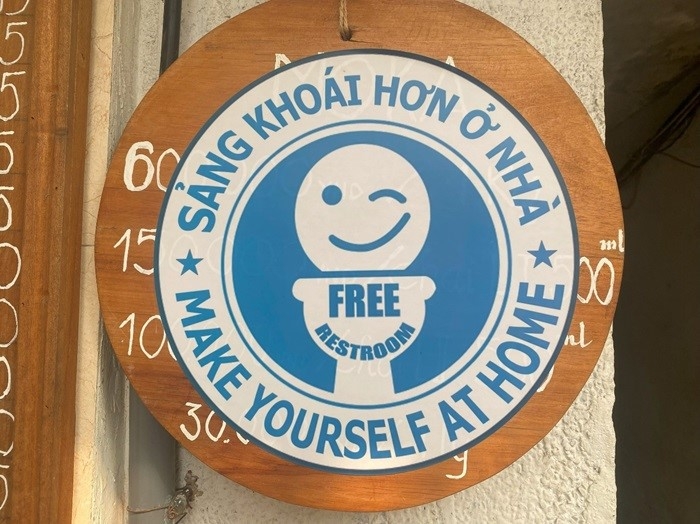 | Với việc gắn logo "Free Restroom" cùng biểu tượng mặt cười, người dân và du khách có thể ghé vào sử dụng nhà vệ sinh hoàn toàn miễn phí. |