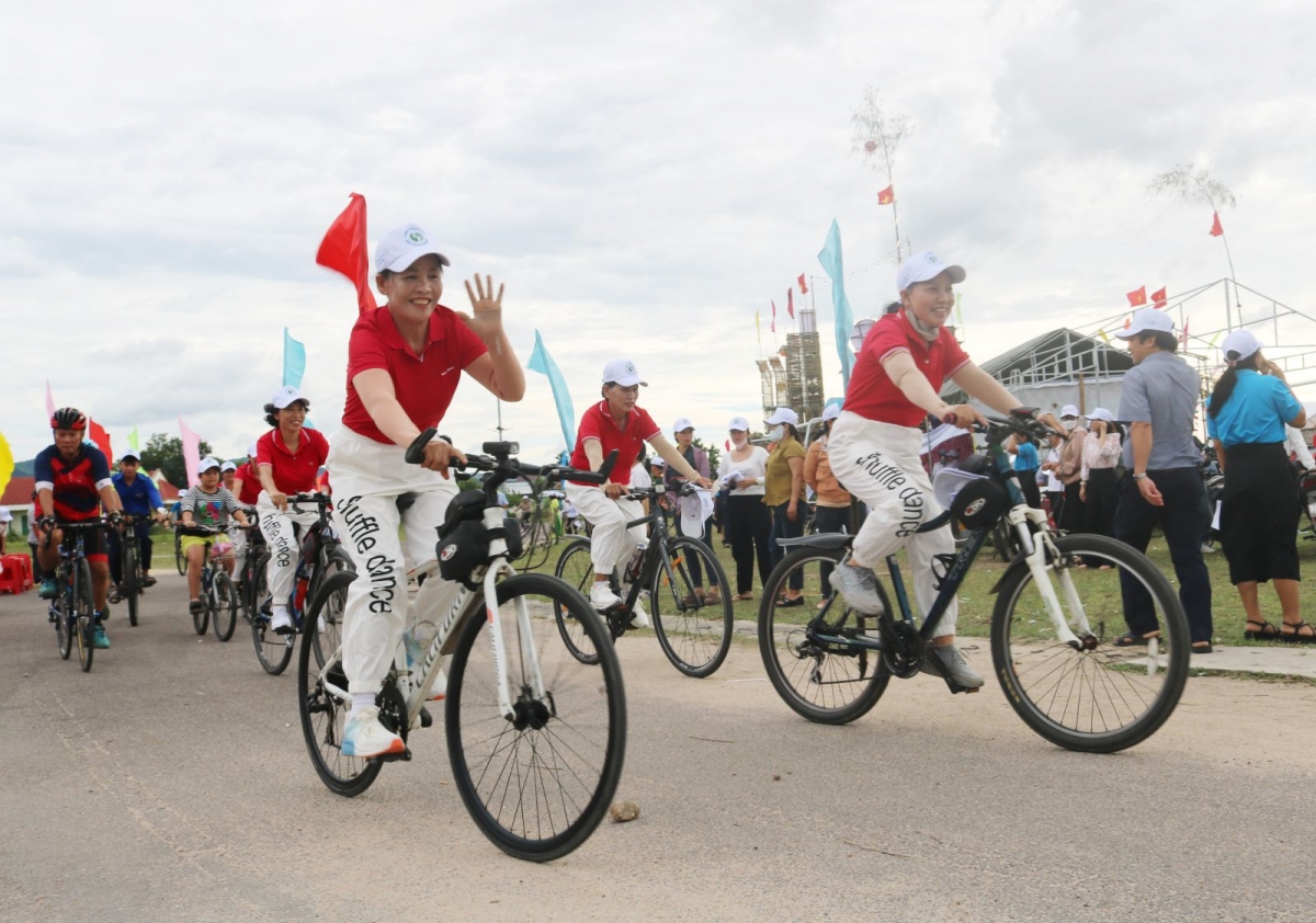 | Đạp xe diễu hành tuyên truyền trên một số tuyến đường tại thị trấn Vân Canh. |