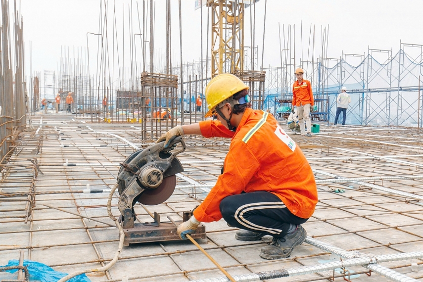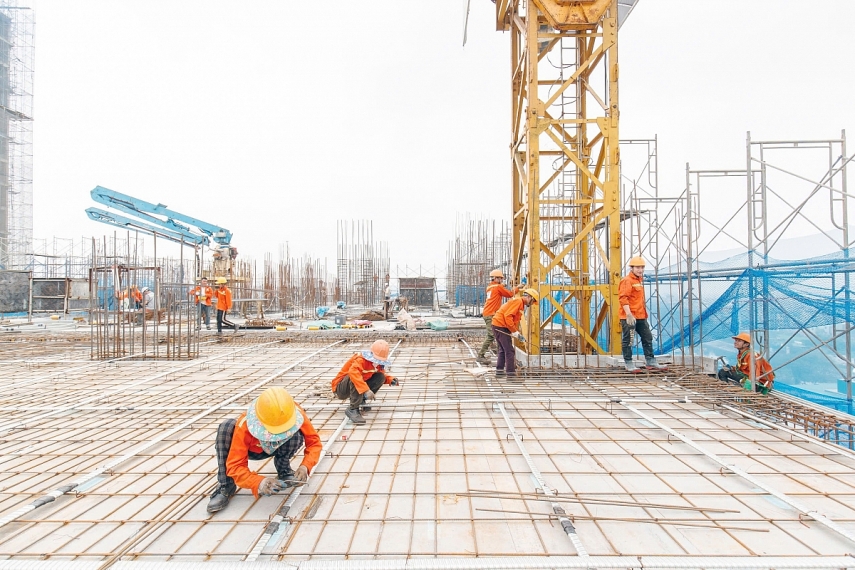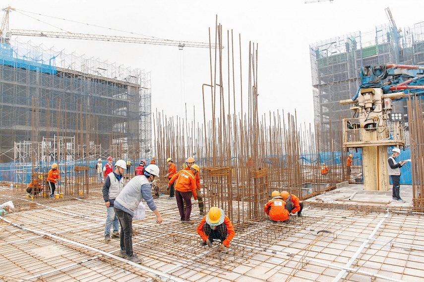 | Không khí khẩn trương, nhộn nhịp trên công trường. |