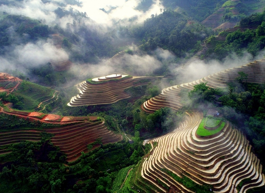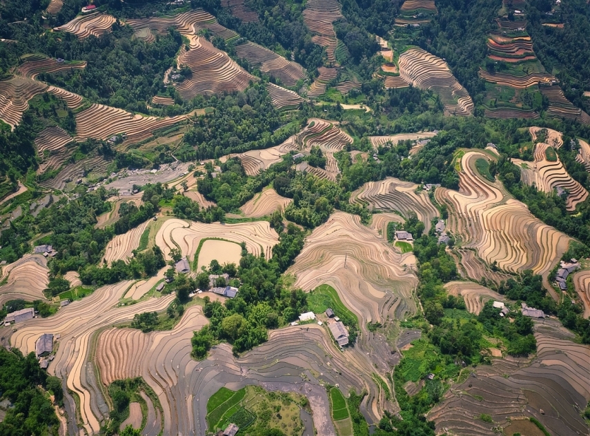 | Một góc ruộng bậc thang Hoàng Su phì từ trên cao |