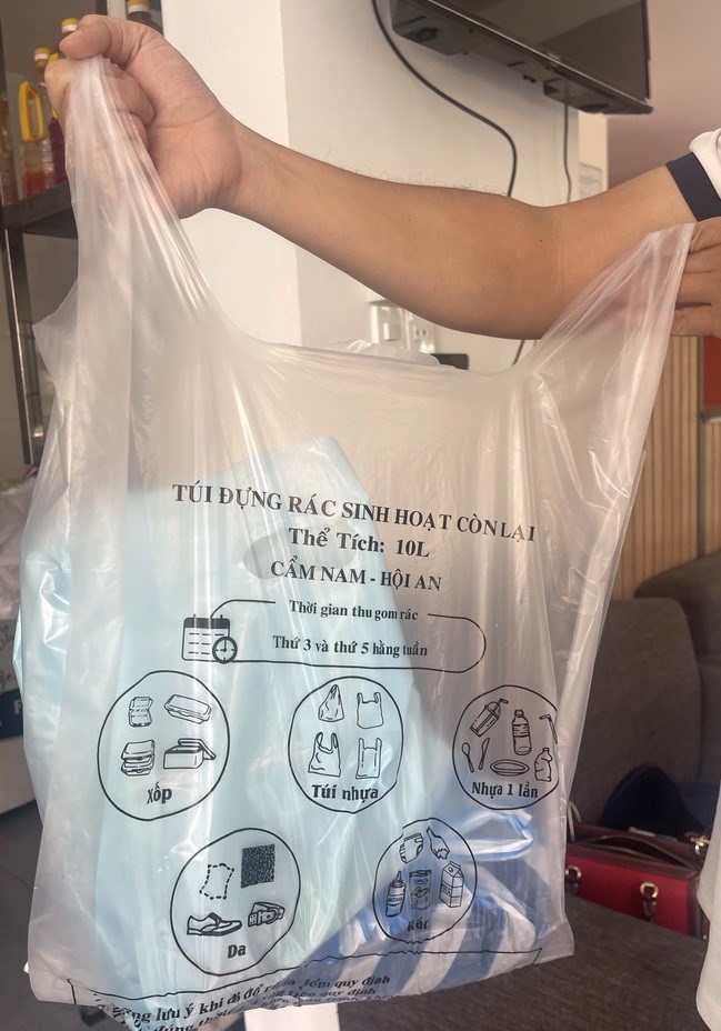 Các hộ dân cũng tự phân loại rác thành 3 nhóm, tương ứng với từng loại nilon đựng rác. Rác tái chế, tái sử dụng sẽ được người dân thu gom, tự xử lý tại nhà. Chất thải rắn sinh hoạt phân loại và bỏ vào túi đựng màu trắng, chữ đen. Rác thực phẩm sẽ đựng vào túi màu trắng, chữ xanh.