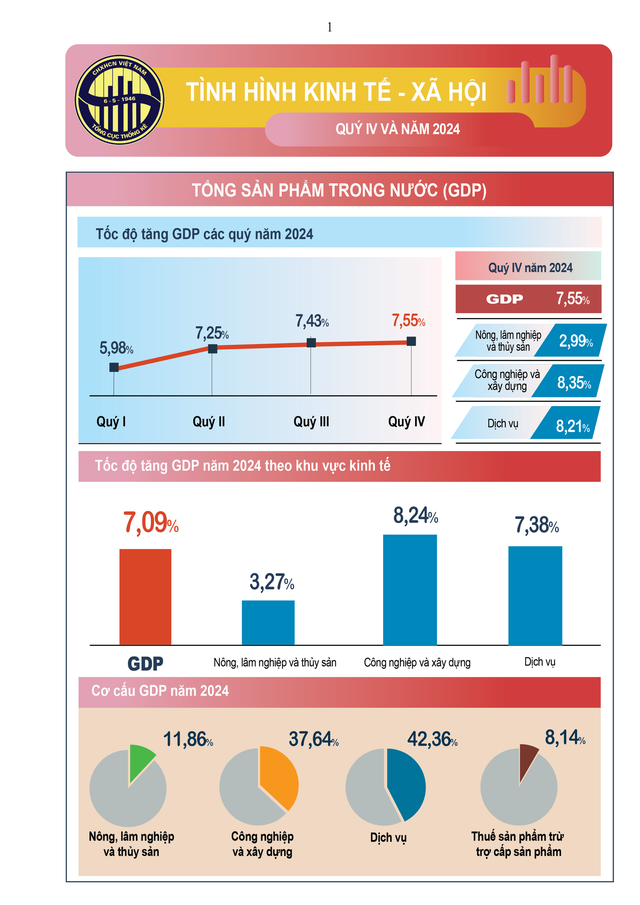 Trong bối cảnh tình hình kinh tế, chính trị thế giới biến động khó lường, nhưng với sự vào cuộc của cả Hệ thống chính trị, sự chỉ đạo, điều hành kịp thời, quyết liệt, sát sao của Chính phủ, Thủ tướng Chính phủ và nỗ lực của các cấp, các ngành, các địa phương, cộng đồng doanh nghiệp và nhân dân cả nước, nền kinh tế nước ta đạt mức tăng trưởng 7,09%, vượt mục tiêu 6-6,5% đề ra, đây là mức tăng trưởng rất tích cực, thể hiện sự quyết tâm và nỗ lực của toàn Hệ thống chính trị trong thực hiện nhiệm vụ, giải pháp phát triển kinh tế – xã hội và thích ứng nhanh, kịp thời với những biến động của kinh tế thế giới, khắc phục hậu quả nặng nề do thiên tai, tạo tiền đề quan trọng để bước sang năm 2025, nền kinh tế được kỳ vọng sẽ bứt phá để hoàn thành các chỉ tiêu trong Kế hoạch phát triển kinh tế – xã hội 5 năm 2021-2025.