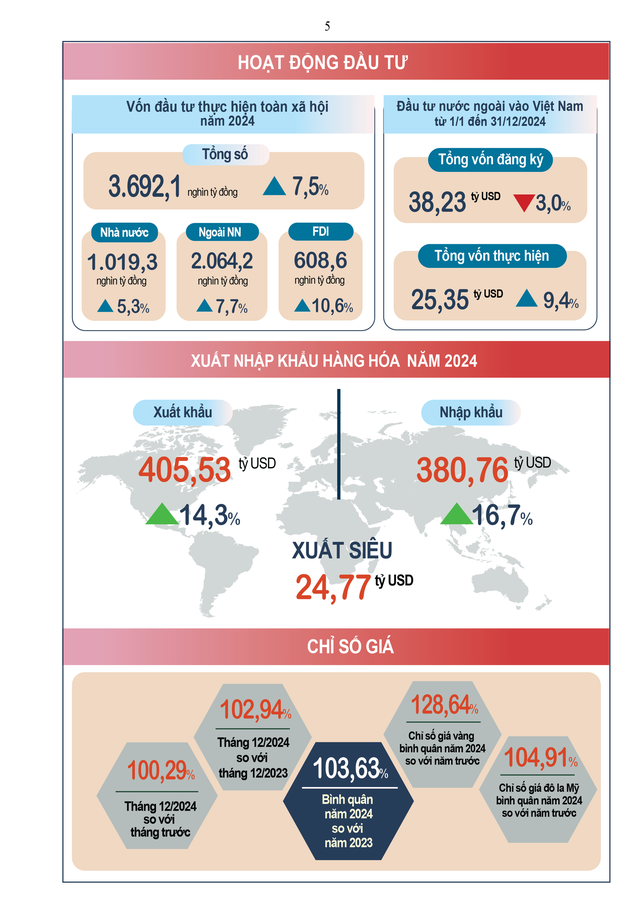 Infographic tình hình kinh tế - xã hội tháng 12 và năm 2024