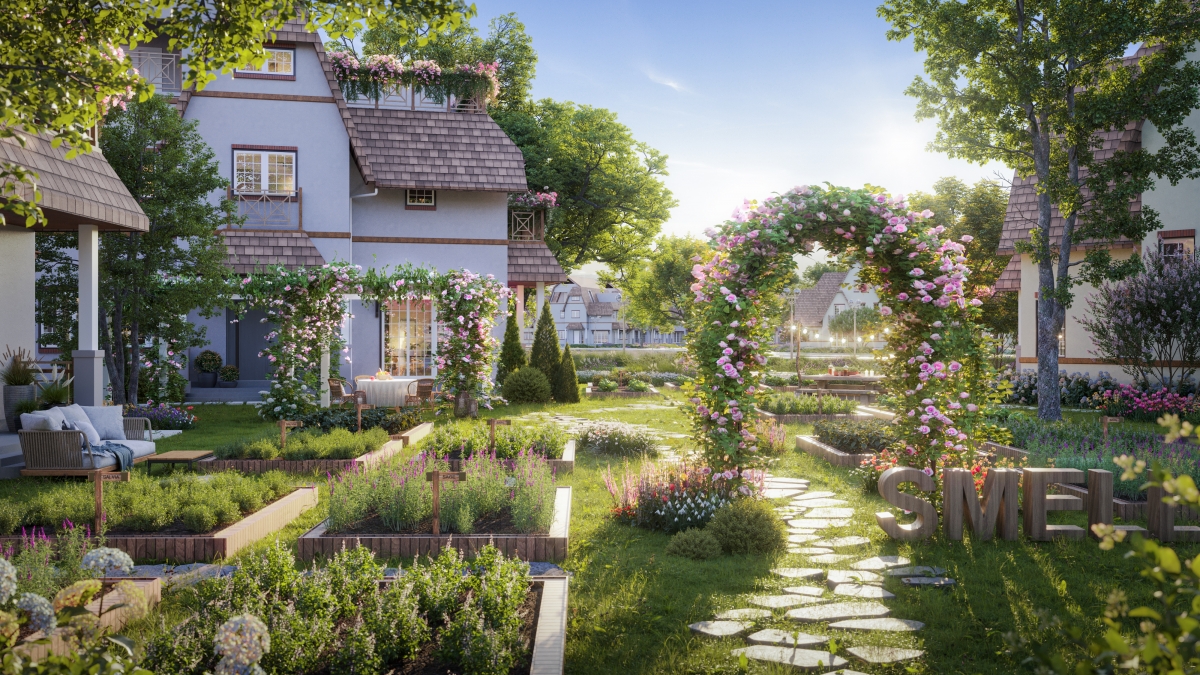 | Những căn biệt thự ngập tràn sắc hoa như những làng cổ châu Âu |