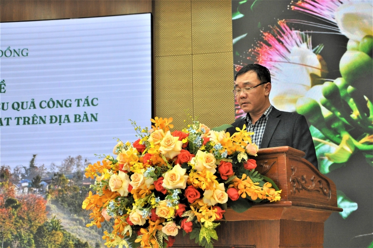 | Phó Chủ tịch UBND tỉnh Lâm Đồng Nguyễn Ngọc Phúc phát biểu tại hội thảo |