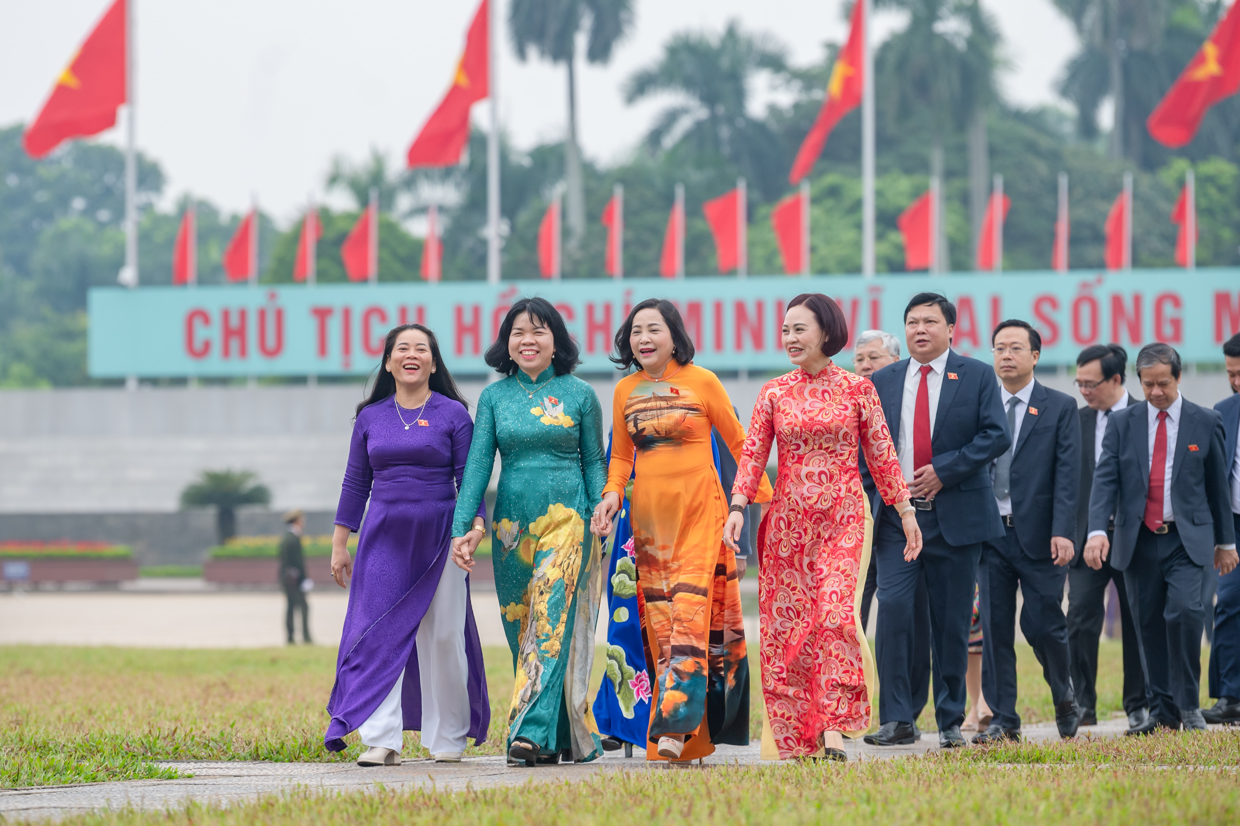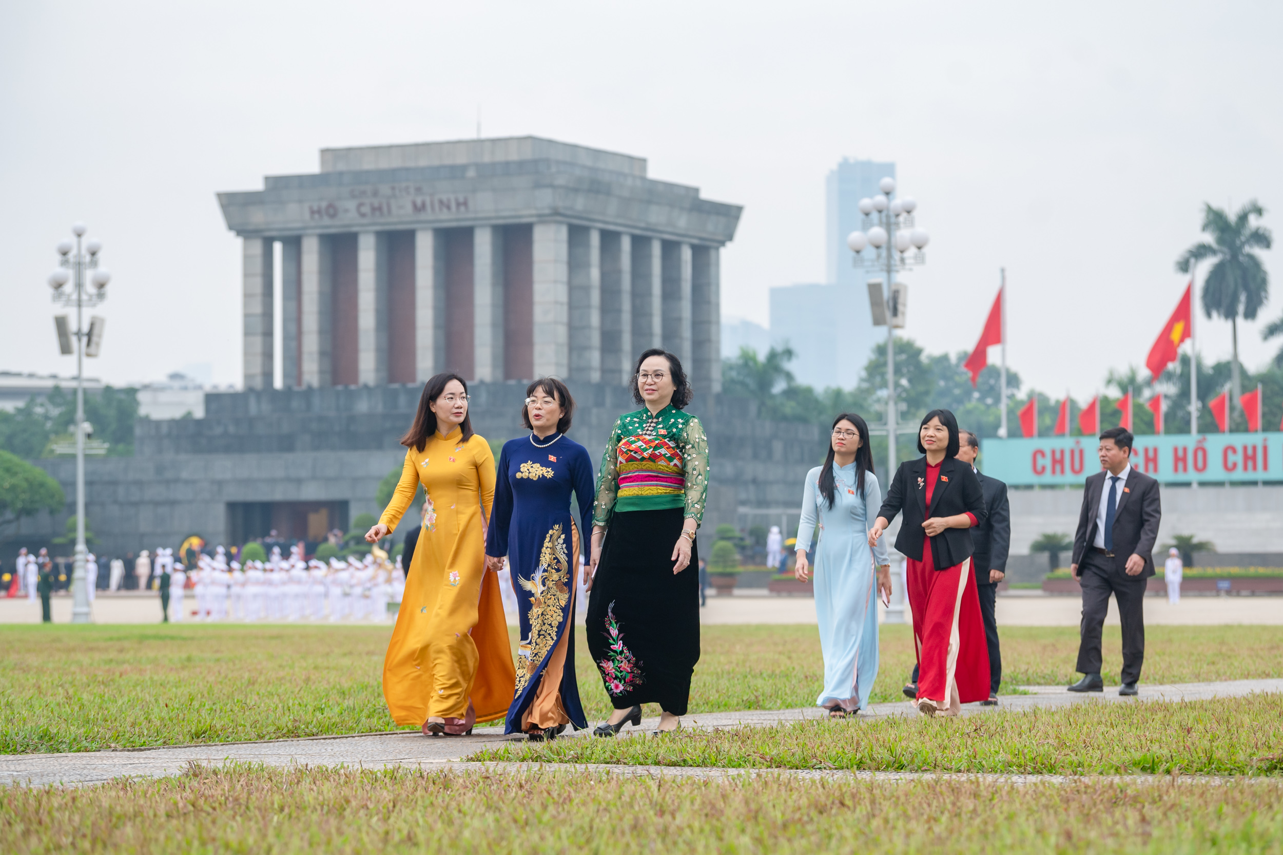 Lãnh đạo Đảng, Nhà nước cùng các đại biểu Quốc hội kính cẩn tỏ lòng biết ơn vô hạn, lòng thành kính tưởng nhớ công lao to lớn của Chủ tịch Hồ Chí Minh