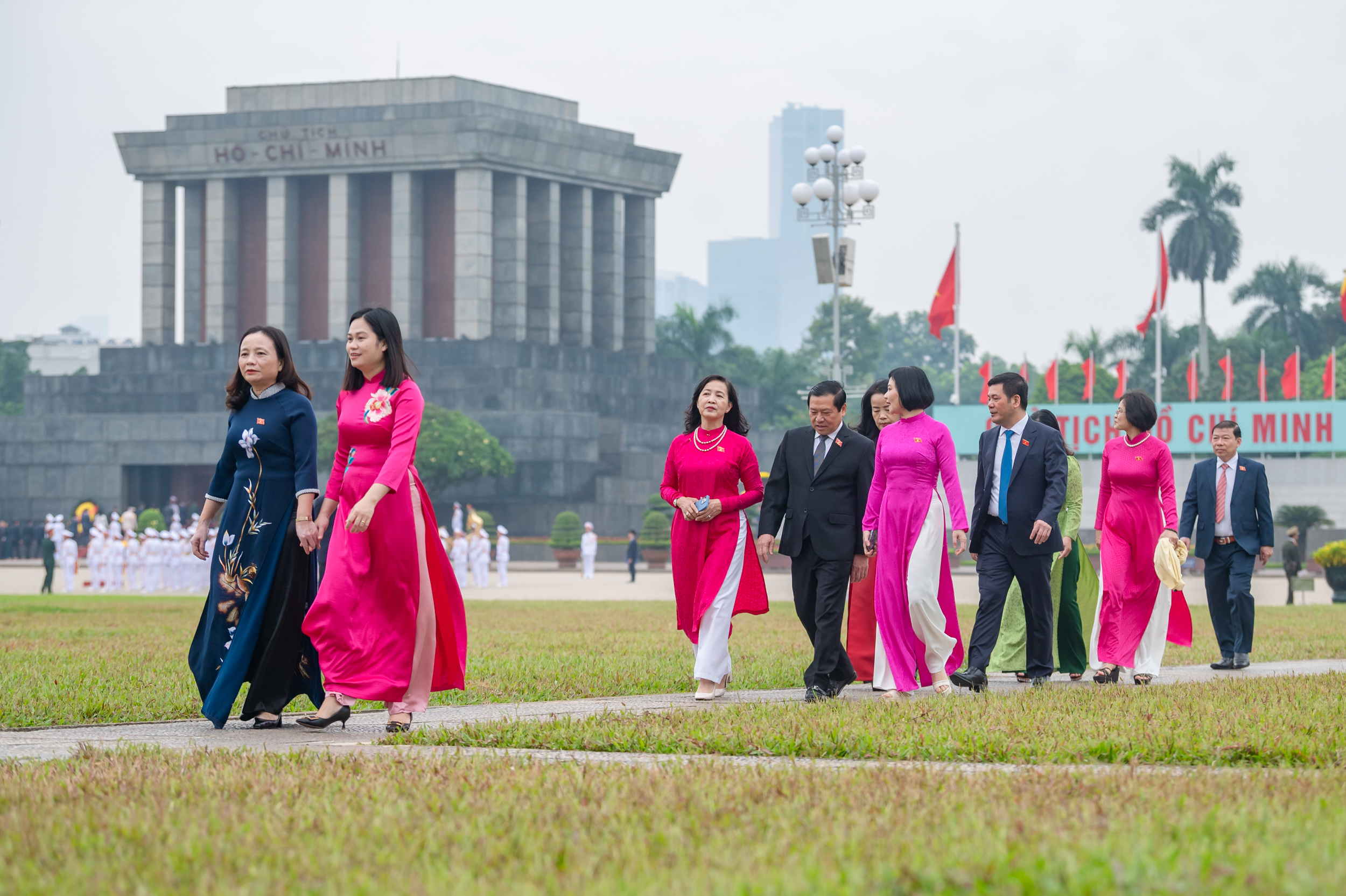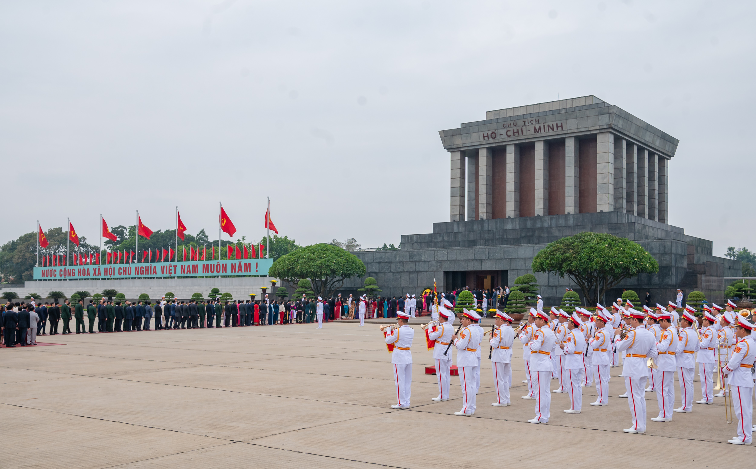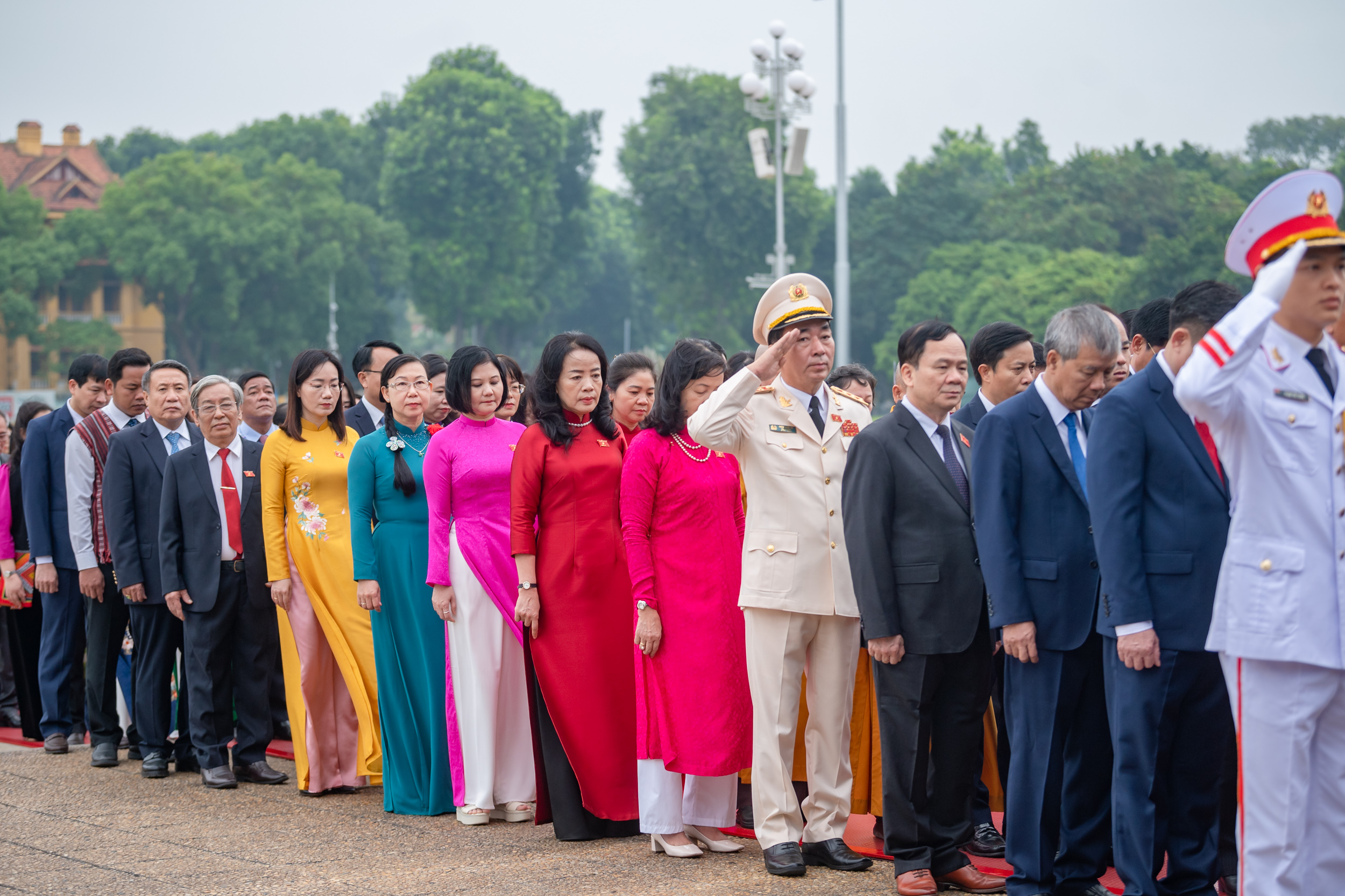 Các đồng chí lãnh đạo Đảng, Nhà nước, Mặt trận Tổ quốc Việt Nam, các đại biểu Quốc hội đặt vòng hoa và vào Lăng viếng Chủ tịch Hồ Chí Minh.