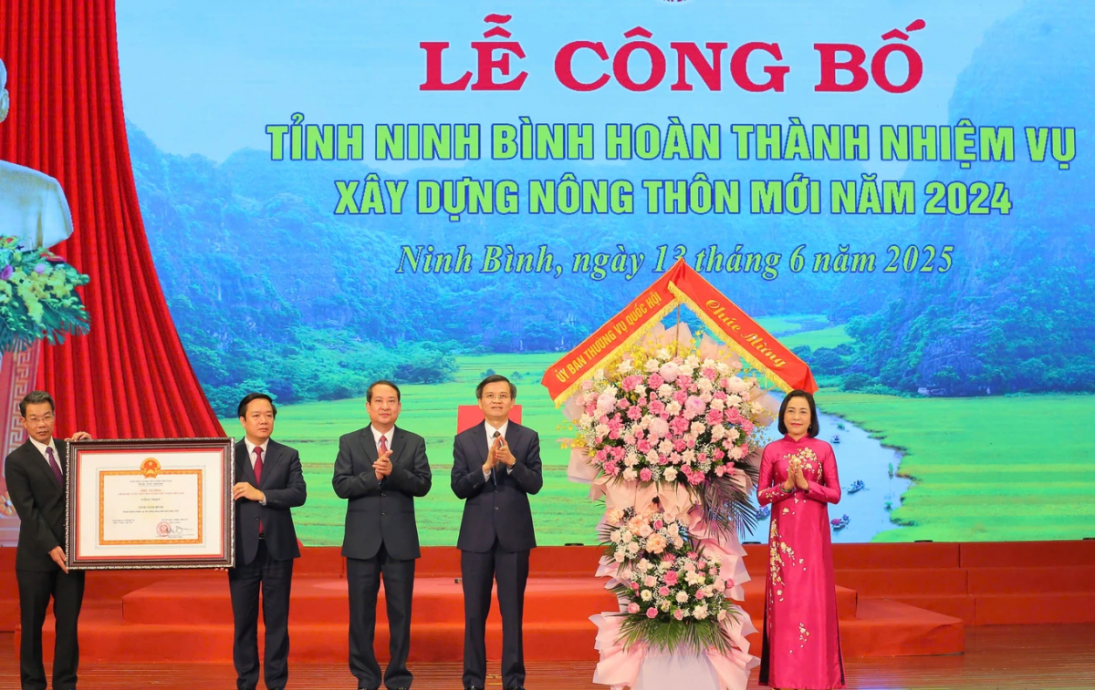 Ngày 13/6, tại Nhà hát Phạm Thị Trân (thành phố Hoa Lư), Tỉnh ủy, HĐND, UBND, Uỷ ban MTTQ Việt Nam tỉnh Ninh Bình đã long trọng tổ chức Lễ công bố Quyết định của Thủ tướng Chính phủ công nhận tỉnh Ninh Bình hoàn thành nhiệm vụ xây dựng nông thôn mới (NTM) năm 2024.