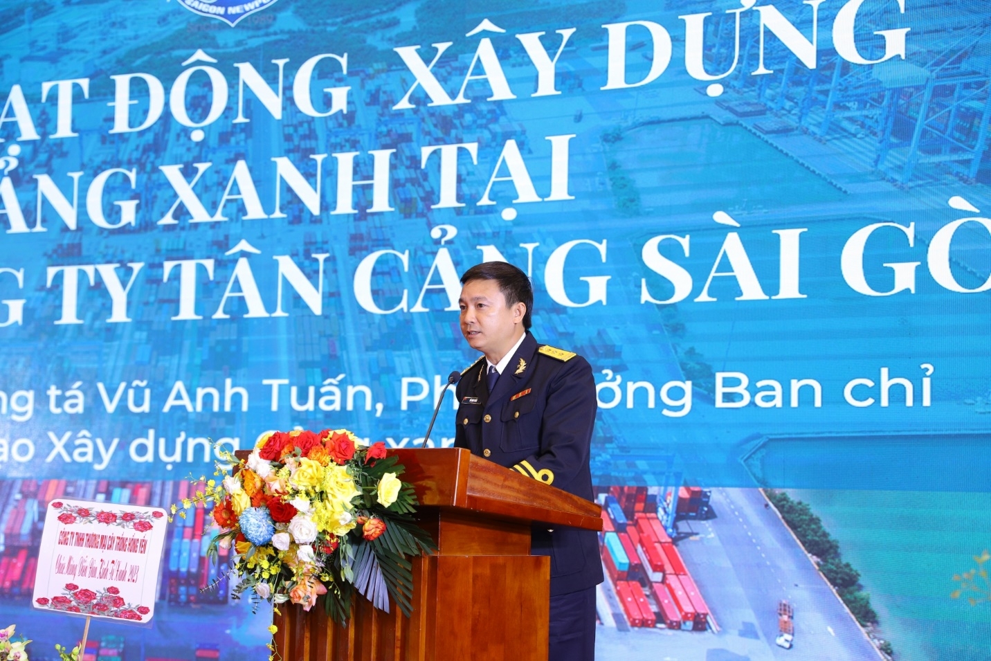 | Thượng tá Vũ Anh Tuấn – Phó Trưởng Ban Chỉ đạo Cảng xanh Công ty TNHH MTV Tổng Công ty Tân Cảng Sài gòn ( TCSG) tham luận về xây dựng Cảng xanh tại Công ty TNHH MTV Tổng Công ty Tân Cảng Sài gòn ( TCSG) |