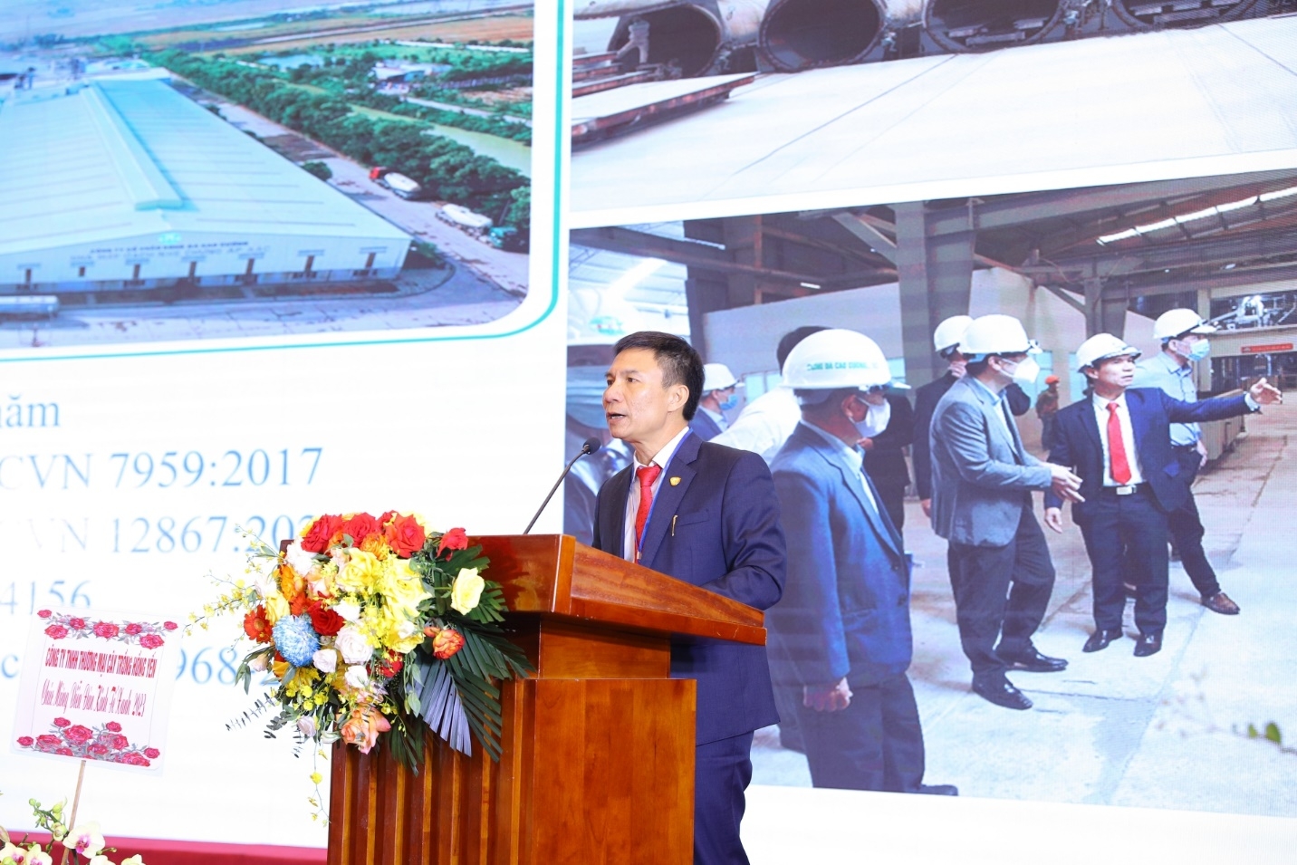 | Ths. Kiều Văn Mát - Chủ tịch HĐQT Công ty Cổ phần Sông Đà Cao Cường tham luận giới thiệu về công ty và công nghệ sản xuất vật liệu xây dựng xanh |