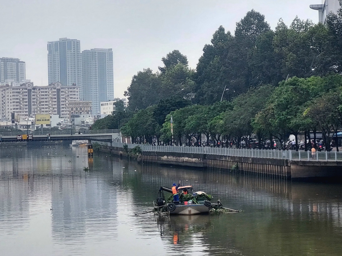 | Công nhân vệ sinh môi trường ở TP. Hồ Chí Minh vớt rác thải trên kênh Nhiêu Lộc - Thị Nghè |