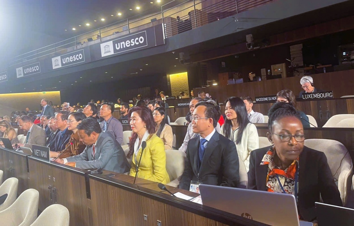 | Đoàn công tácViệt Nam tham dự Kỳ họp lần thứ 47 của Ủy ban Di sản Thế giới tại Thủ đô Paris (Pháp) - Ảnh: Cục DSVN |
