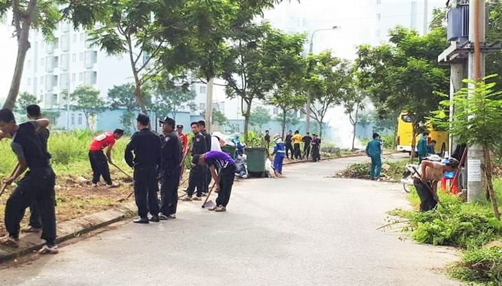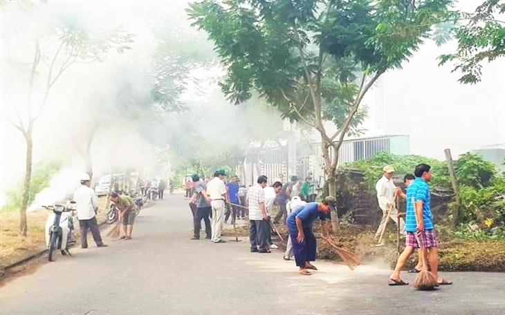 Đông đảo cán bộ, nhân dân tích cực tham gia làm vệ sinh môi trường