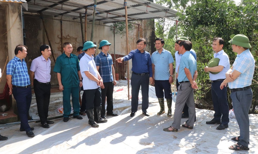 Đồng chí nhấn mạnh tính chất đặc biệt nguy hiểm của 2 sự cố nêu trên, nhất là khi thời tiết mưa bão ngày càng diễn biến phức tạp. Đề nghị tỉnh, các xã tập trung cao nhất cho nhiệm vụ khắc phục sự cố; bảo đảm an toàn đê điều, an toàn tính mạng, tài sản cho Nhân dân và Nhà nước.