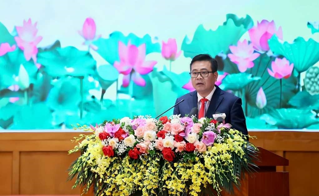 | Đồng chí Vũ Đại Thắng, Ủy viên Trung ương Đảng, Bí thư Tỉnh ủy, Trưởng đoàn ĐBQH tỉnh, phát biểu giao nhiệm vụ cho 54 Đảng bộ xã, phường, đặc khu. |